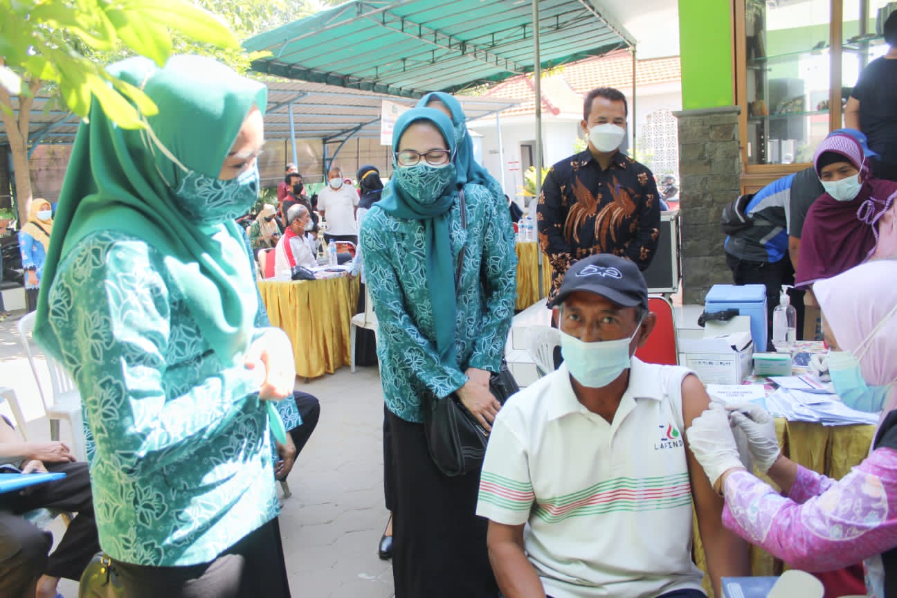 Ketua TP PKK Kabupaten Sidoarjo, Sa’adah Ahmad Muhdlor beserta pengurus meninjau kembali pelaksanaan vaksinasi di daerah Kecamatan Taman dan Kecamatan Porong, Kabupaten Sidoarjo, Sabtu (24/7).