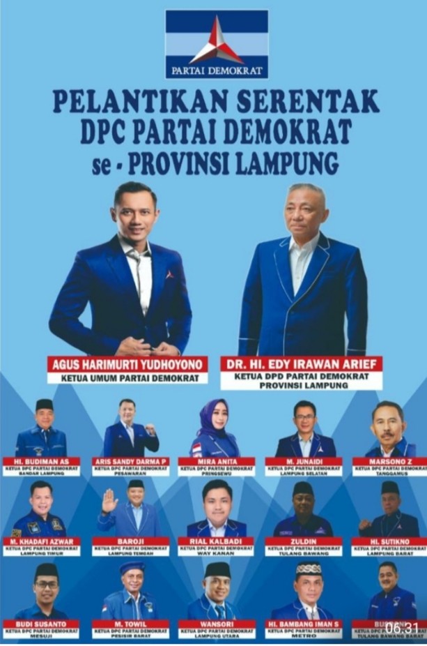 Menjelang Pelantikan Kepengurusan 15 DPC Partai Demokrat Lampung yang, diperkirakan dilaksanakan pada Rabu 18 Januari 2023 , mendapat animo luar biasa bukan Hanya dari Para Kader Partai Demokrat Lampung Tapi Juga Dari banyak Tokoh Masyarakat dan Simpatisan Politisi Muda Agus Harimurti Yudhoyono atau yang Populis di Sapa AHY, Senin (16/01/2023). Telah diketahui Bersama saat ini Partai Berlambang mercy Besutan SBY kembali menapaki Posisi Populernya sejak Banyak bermunculan Penokohan Politisi Muda baik di kepengurusan Pusat hingga ditingkat ranting.