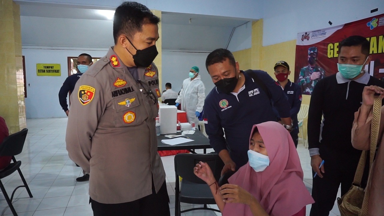 Percepatan Vaksinasi Nasional yang diselenggarakan oleh Polres Jember dengan kuota 1500 Vaksin, diserbu oleh kalangan siswa di Kabupaten Jember. Masyarakat dengan antusias mendatangi gerai vaksin Polres Jember yang berada di Gedung Bhayangkara Jember (21/08/2021). Menariknya, masyarakat di sekitar Bhayangkara tersebut secara serentak mengumumkan dengan TOA (pengeras suara) yang berada di masjid atau mushollah.