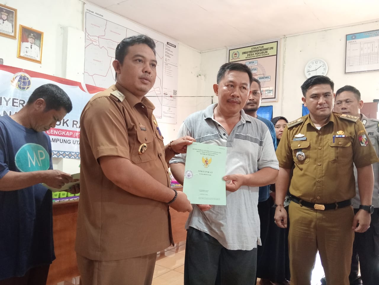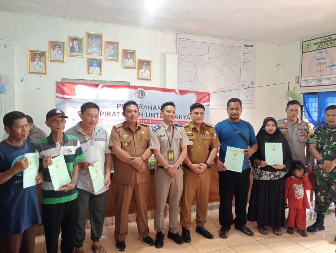 Sebanyak 185 warga Desa Pekurun , Kecamatan Abung Pekurun, Lampung Utara menerima sertifikat program pendaftaran tanah sistematis lengkap (PTSL) yang diserahkan secara simbolis Kepala Desa setempat, Paiman. Spd.