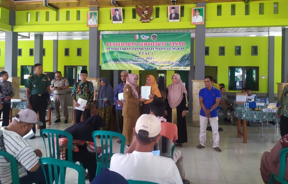 Seperti halnya Pemerintah Desa ( Pemdes) Kemamang kecamatan Balen Kabupaten Bojonegoro Jawa Timur bagikan sertifikat masal Program PTSL kepada pemohon, selasa 19/12/2023 pagi.