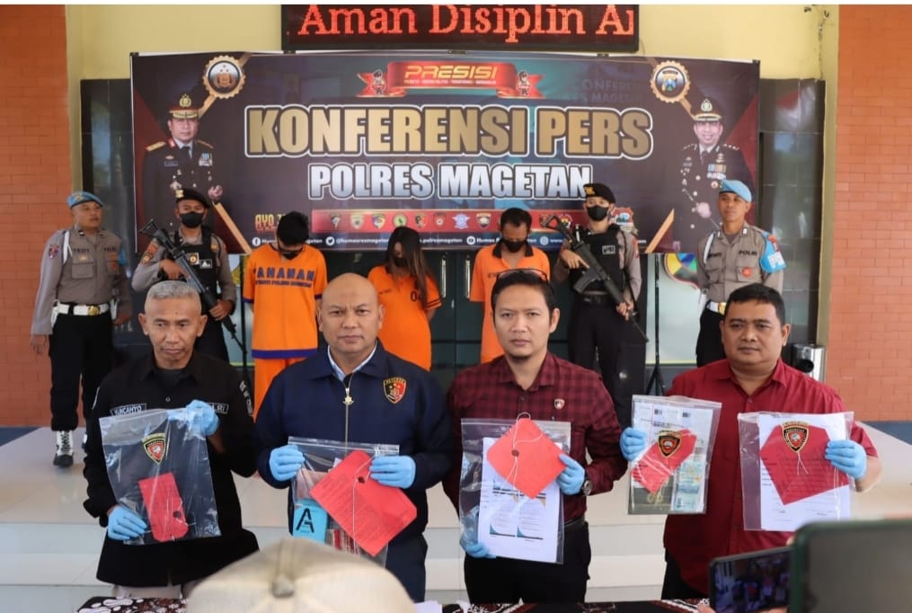 Disampaikan Kapolres Magetan AKBP Muhammad Ridwan SIK MSi melalui Kasat Reskrim Rudi Hidajanto saat konferensi pers di Halaman Polres Magetan, Kamis (27/7/2023) ada tiga tersangka yang telah diamankan.