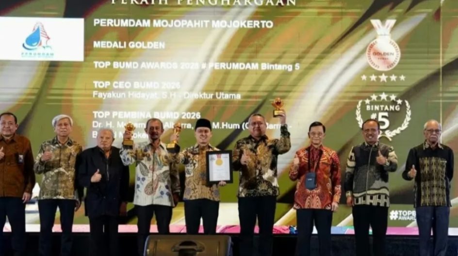 Sebuah prestasi kerja membanggakan telah ditunjukan kembali oleh Perusahaan Umum Daerah Air Minum Mojopahit ( Perumdam ) Mojopahit Mojokerto, yang merupakan Badan usaha milik daerah (BUMD) kebanggaan Kabupaten Mojokerto dibawah kepemimpinan Direktur Fayakun Hidayat, SH yang kembali meraih penghargaan TOP BUMD Awards 2026 dengan predikat Bintang 5.