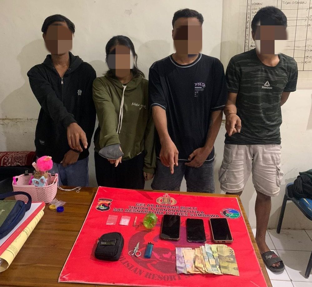 Keempat remaja yang masing-masing berinisial AS (23), AK (26), AS (17) dan SS (17) itu diamankan dari salah satu kos yang berada di Kecamatan Labuhan Badas pada hari Rabu (19/07/23) sekitar pukul 21.00 wita.