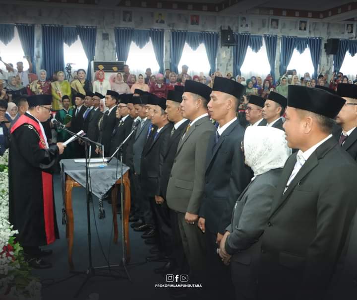 45 anggota DPRD yang dilantik, 80% di antaranya merupakan wajah baru, menandai semangat perubahan dan harapan baru bagi masyarakat Lampung Utara. Prosesi pelantikan ini dipimpin oleh Ketua Pengadilan Negeri Lampung Utara, Ferdinaldo, yang dengan khidmat membacakan sumpah jabatan di hadapan seluruh anggota DPRD baru dan para undangan yang hadir.