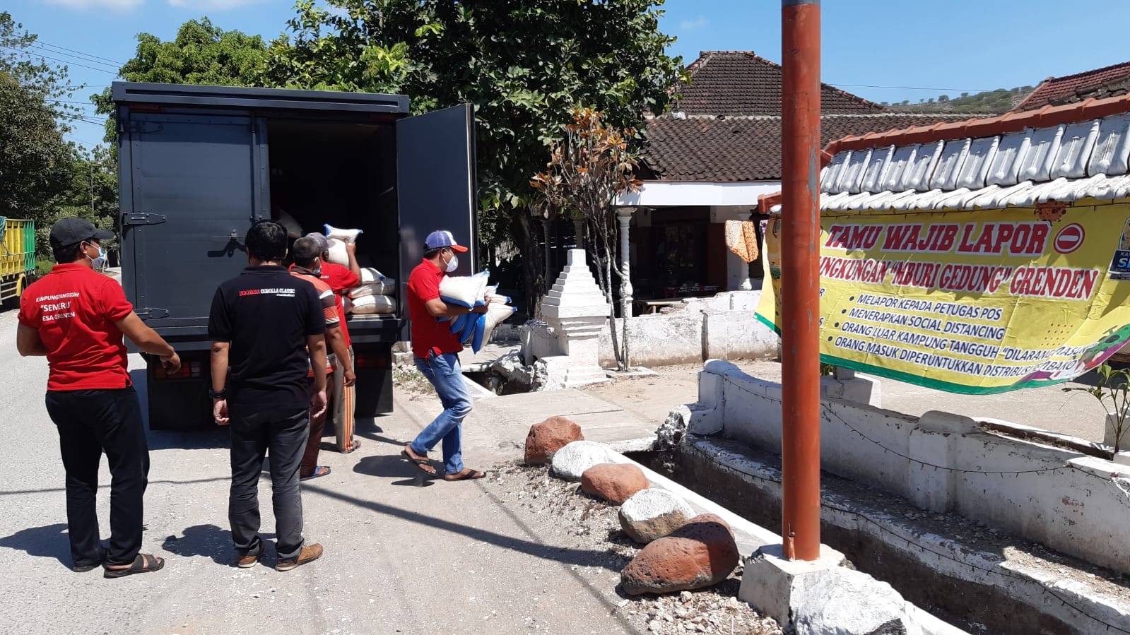Pendistribusian beras pertama dilakukan kepada Relawan Pelopor Kampung Tangguh, yakni Relawan Lingkungan Tembakan, Kecamatan Kaliwates. Total beras yang didistribusikan sebanyak 250 kg.