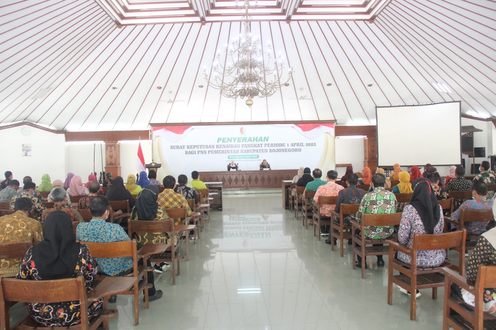 Sebanyak 571 orang Pegawai Negeri Sipil (PNS) di lingkup Pemkab Bojonegoro menerima SK kenaikan pangkat periode 1 April 2023. Penyerahan SK tersebut diberikan langsung oleh Bupati Bojonegoro Anna Mu’awanah di Pendopo Malowopati, Kamis (06/04/2023).