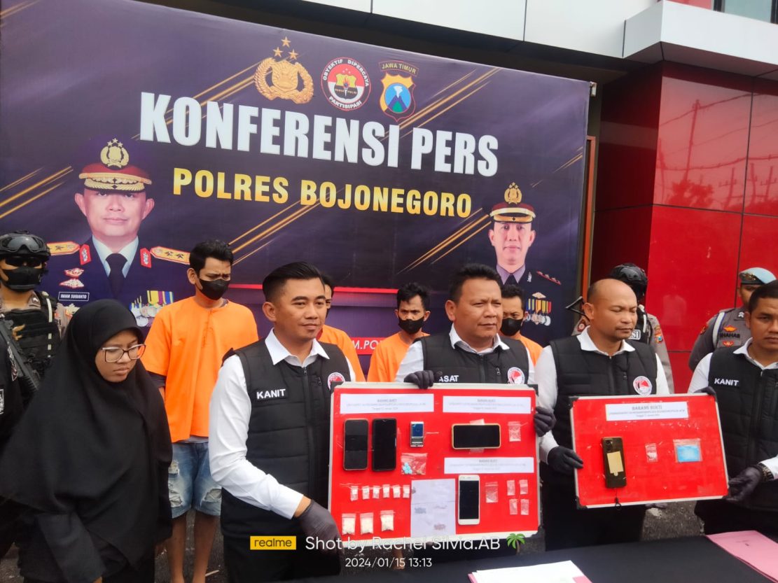 Penangkapan keempat tersangka disampaikan dalam konferensi persnyang digelar di Mapolres Bojonegoro, Senin (15/1/2024).