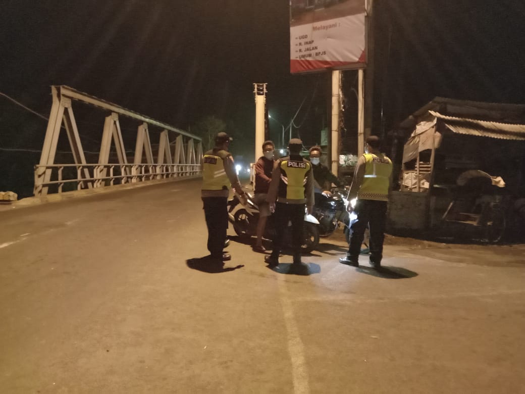 Polsek Jombang bersama anggota melakukan tindakan operasi masker malam hari pukul 21.40 WIB, bertempat didepan Mako Polsek Jombang, Selasa (10/08).