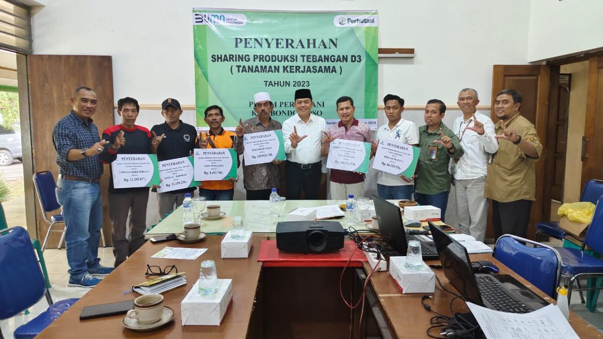 Berdasarkan perjanjian kerjasama yang telah ditandatangani bersama antara Perum Perhutani KPH Bondowoso bersama dengan investor dan LMDH serta sesuai dengan hasil produksi kayu jenis sengon laut pihak ke tiga, Misbakhul Munir Administratur Perum Perhutani KPH Bondowoso yang didampingi oleh Anton Sujarwo S.Hut wakil ADM KSKPH Bondowoso selatan, Mat Sudik Kasi Madya Produksi dan Ekowisata serta Agus Sutrisno Kasi Madya Keuangan, SDM,umum & IT menyerahkan shering atau bagi hasil kepada 19 orang investor dan 5 LMDH bertempat di ruang sonokeling Jumat (23/8/24)