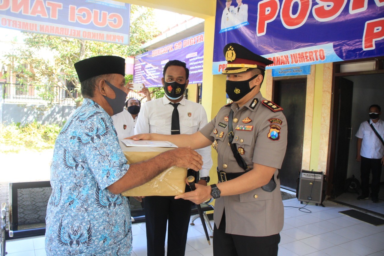 Jelang Peringatan Hari Bhayangkara Ke 75, para ahli waris pejuang Palagan Jumerto menerima tali asih dari Kepala Kepolisian Resort Jember AKBP. Arif Rachman Arifin, S.I.K, M.H , SH, yang digelar di Tugu Palagan Kelurahan Jumerto Kecamatan Patrang, Jember. Selasa (29/6/2021).