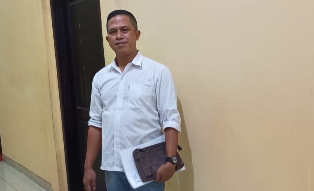 Direktur LBH Djawa Dwipa Hadi Purwanto SH, ST, saat melaporkan para pelaku perusak alat berat Milik H Khoirul Anwar di Polres Mojokerto