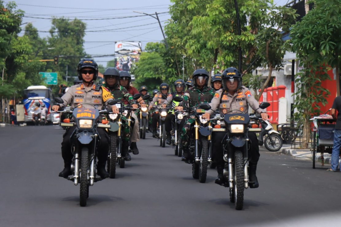 Polres Bojonegoro menggelar Patroli Skala Besar (Show Of Force) dalam rangka Pengamanan Tahap Pemungutan dan Penghitungan Suara Pemilu Tahun 2024, Rabu (14/2/2024).