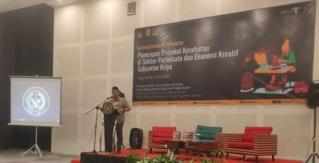 Hadir sebagai narasumber Bimtek yakni Fitorio Leksono (Tenaga Ahli eksternal Kemenparekraf RI Deputi VII dan Sekjend Aliansi Desain Produk Industri Indonesia) serta Didik Eko Pramono (Kepala Bidang Ekraf Dinas Pariwisata dan Kebudayaan Jember). (San)