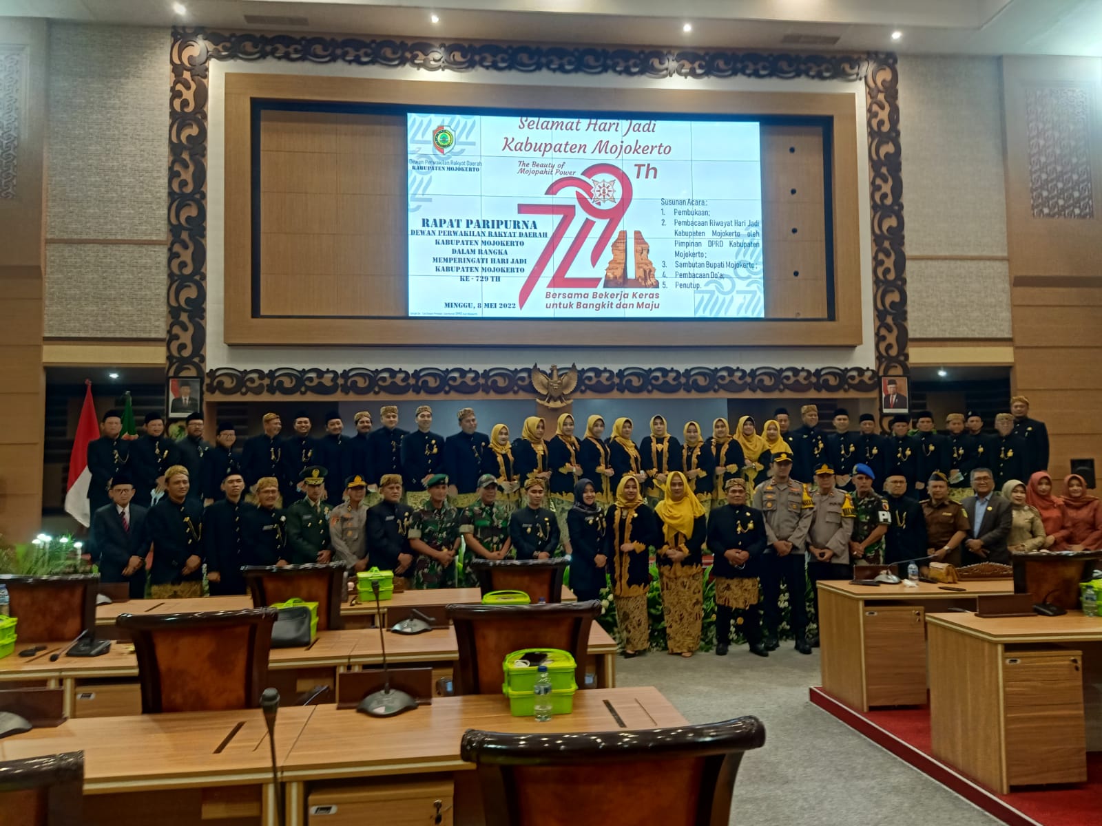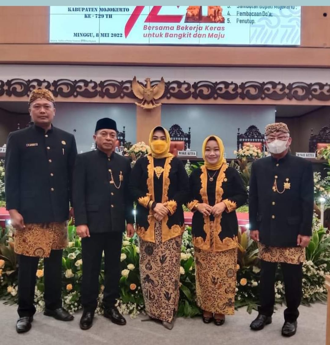 Dewan Perwakilan Rakyat Daerah (DPRD) Kabupaten Mojokerto menggelar Rapat Paripurna dalam rangka memperingati Hari Jadi Kabupaten Mojokerto ke-729 tahun, yang jatuh setiap tanggal 09 Mei, dengan tema “Bersama Bekerja Keras untuk Bangkit dan Maju”, di ruang rapat Graha Whicesa lantai ll gedung Dewan Kabupaten Mojokerto. Sooko Mojokerto, Minggu pagi tadi. (08/05/2022)