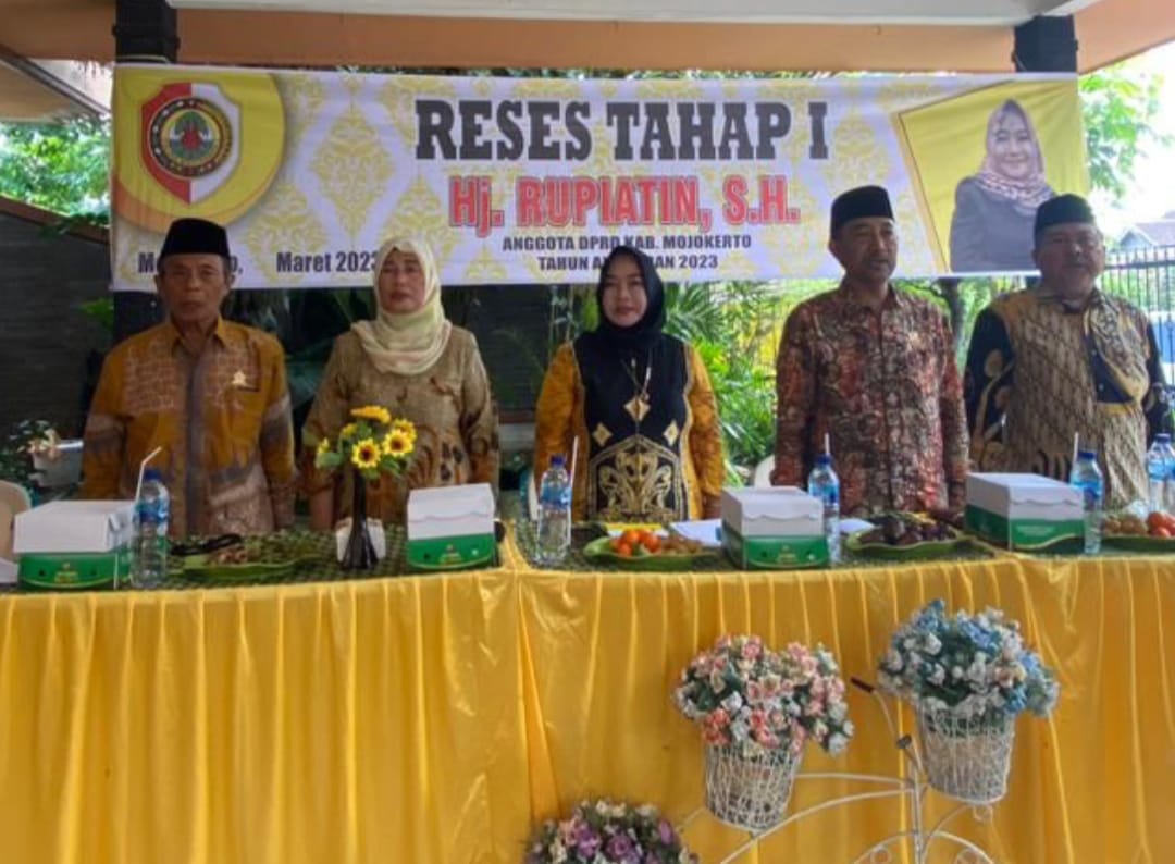 Anggota DPRD Kabupaten Mojokerto Hj.Rupiati.S.H. dari Fraksi Golkar menggelar Serap Aspirasi Masyarakat (Reses ) tahap I tahun 2023 dihalaman kediamannya di Desa Watonmas Jedong Kecamatan Ngoro kabupaten Mojokerto Sabtu, ( 18 /03/2023 ) pagi.