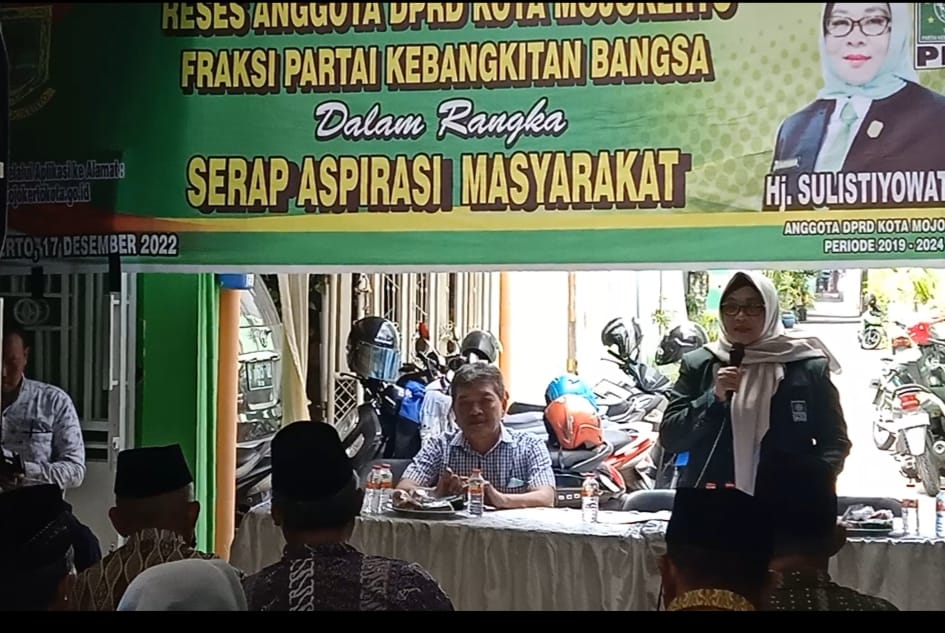 Anggota DPRD Kota Mojokerto dari Fraksi PKB, Hj. Sulistiyowati, SE mengelar Serap Aspirasi Masyarakat ( Reses ) tahap III Tahun 2022, yang diadakan di Kalimati Gang 4 Kelurahan Jagalan Kecamatan Kranggan, Sabtu ( 17 / 12 / 2022 ).