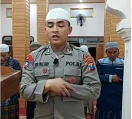 Brigadir Kepala (Bripka) Nur Wachid saat Menjadi Imam Sholat Berjamaah | FOTO: Ist