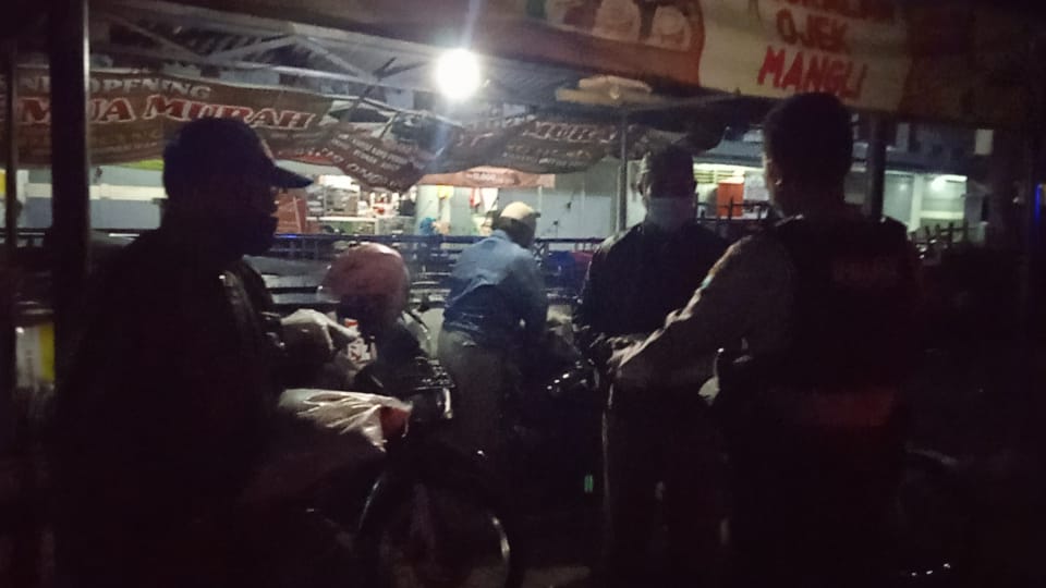 Anggota Team Alap-alap Samapta Polres Jember Menggelontorkan bantuan beras kepada tukang ojek, tukang becak, dibeberapa tempat yang menjadi pangkalan, Sabtu (10/07/21) malam.