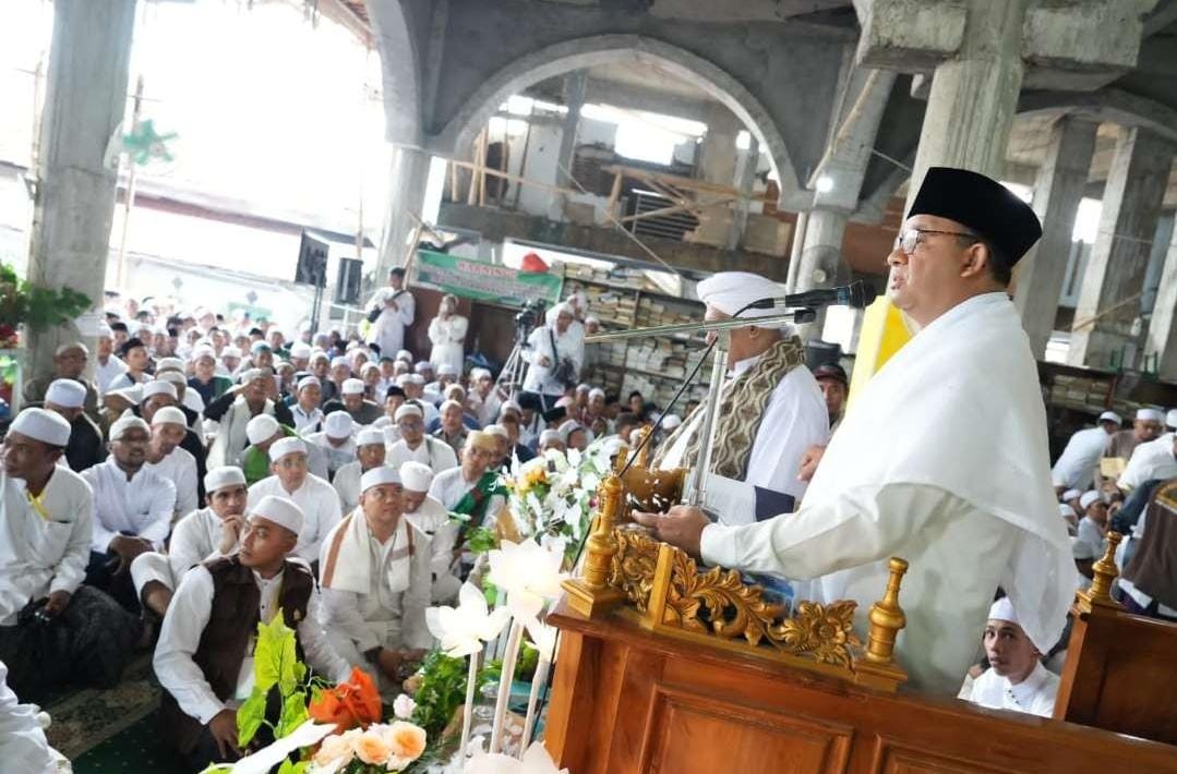“Saya mendapatkan kehormatan ini mewakili keluarga besar Habib Sholeh bin Muhsin Al-Hamid memberikan sambutan selamat datang kepada para jamaah yang hadir hari ini,” kata Anies.