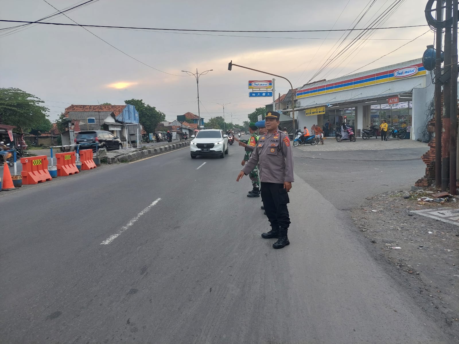Antisipasi Arus Balik Petugas Pos PAM Bunder Polresta Cirebon Laksanakan Gatur Pagi untuk Memperlancarkan Arus Lalin