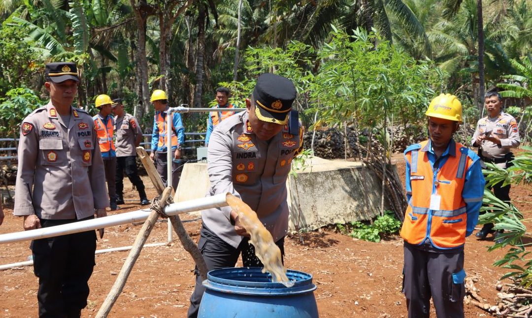 Kepala Kepolisian Resor Wonogiri AKBP Andi Muhammad Indra Waspada Amirullah, SH., SIK., MM., MSi., bersama PJU Polres Dan Anggota Polres Wonogiri melakukan pengecekan bantuan pembuatan sumur bor di Dsn Sambi Desa Paranggupito Kecamatan Paranggupito, Kabupaten Wonogiri, Jumat (15/9/2023).