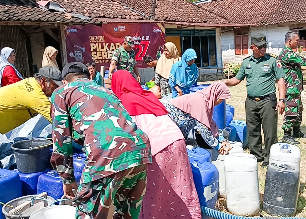 Kegiatan tersebut, merupakan kolaborasi bersama antara TNI Kodim 0813 Bojonegoro, Koramil 04/Sugihwaras dan PT. Waja Tobacco Siwalan. Mereka bergotong-royong, bersinergi membagikan air bersih itu ke 2 titik penampungan. Warga yang sudah menunggu langsung berkerumun mengambil bantuan air dengan ember atau jerigen kosong.