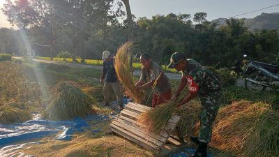 Babinsa Kodim Ponorogo Bantu Petani Rawat Tanaman Padi