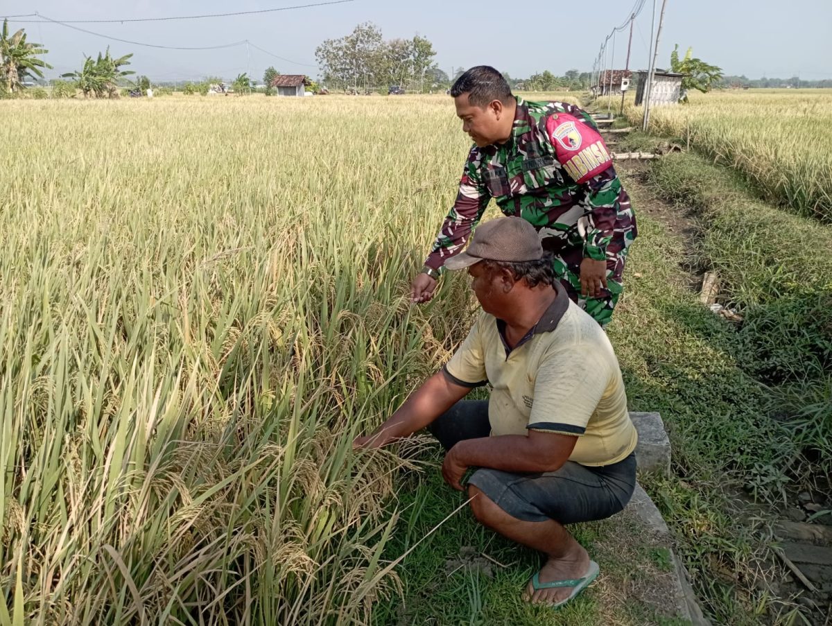 “ Salah satu kegiatan di wilayah desa binaan hari ini yaitu melakukan pendampingan dan pengawalan petani yang tergabung dalam Poktan Subur Dusun Ciluk 2 Desa Ciluk yang sedang melakukan perawatan tanaman padi menjelang panen agar aman tidak terserang hama, “ kata Koptu Danang PN.