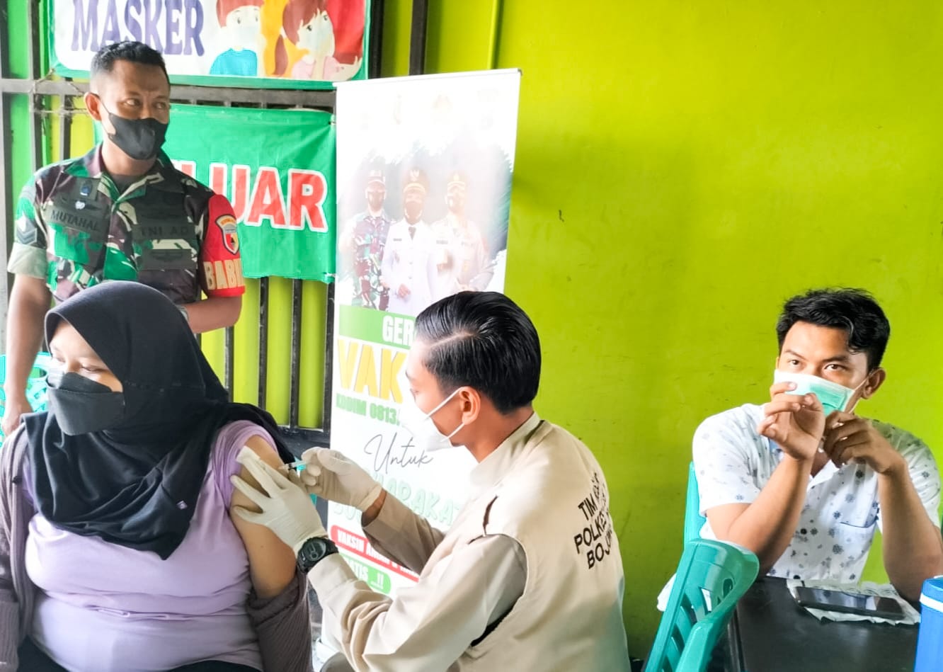 Untuk mensukseskan program pemerintah dalam percepatan vaksinasi, Bintara Pembina Desa (Babinsa) Koramil 05/Dander, Sertu Mutahal, memberikan pendampingan Tim Vaksinasi Mobile Kodim 0813 Bojonegoro pada kegiatan Serbuan Vaksinasi yang dilaksanakan di Pasar Desa Dander dan Masjid Ar Rohman, Sabtu (23/4/2022).