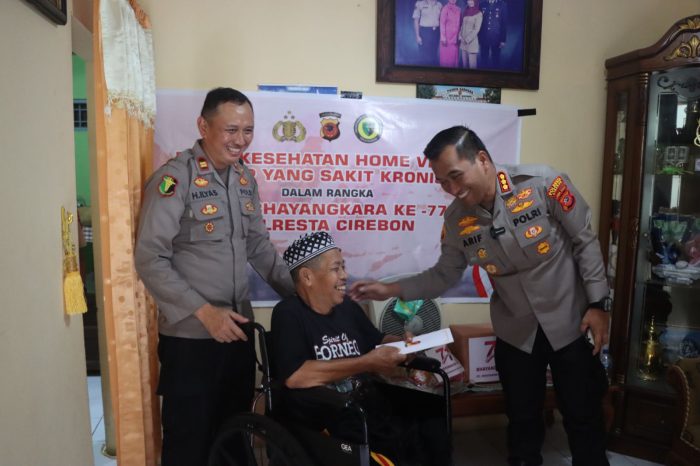 Kegiatan bakti kesehatan ini sebagai bentuk kepedulian pimpinan kepada anggota yang sedang mengalami sakit. Adapun dalam rangka Hari Bhayangkara kali ini, Kapolresta Cirebon menjenguk dua personel yang sedang mengalami sakit di rumahnya masing-masing.