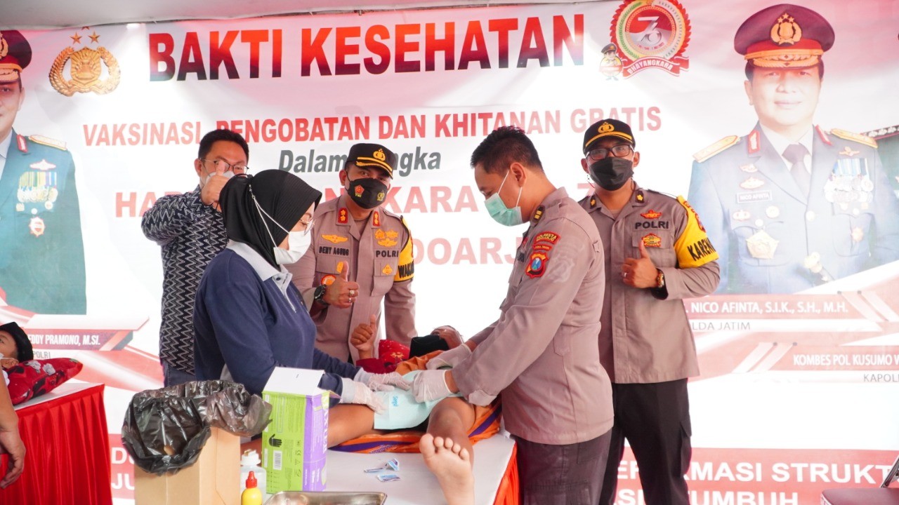 Mengisi peringatan Hari Bhayangkara ke-76, Polri mengadakan Bakti Kesehatan serentak di seluruh wilayah jajaran. Kegiatan ini guna semakin mendekatkan Polri dengan masyarakat.