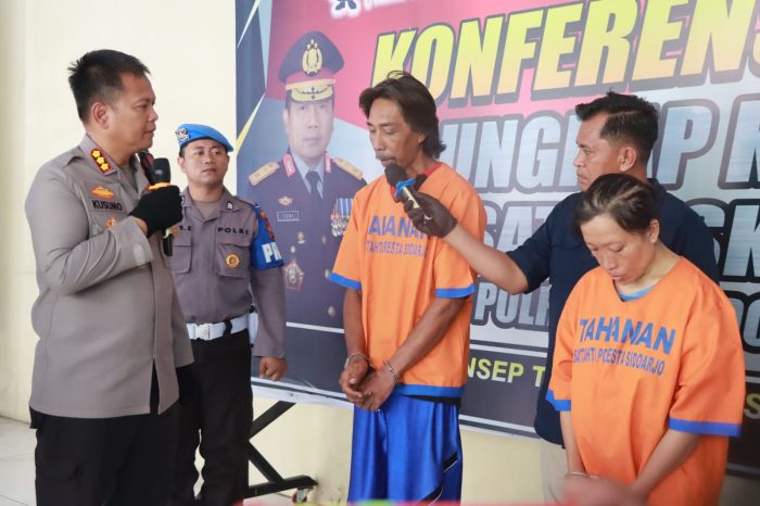BS., laki-laki (48) tahun, pekerjaan penjual bakso, alamat Kel. Menanggal Kec. Gayungan Kota Surabaya yang kost di Desa Masangan Kulon kecamatan Sukodono Kab. Sidoarjo. dan tersangka SI., perempuan (43) tahun pekerjaan swasta (penjaga warung nasi), alamat Kel. Lontar Kec. Sambikerep Kota Surabaya atau kost di Ds. Masangan Kulon Kec. Sukodono Kab. Sidoarjo.