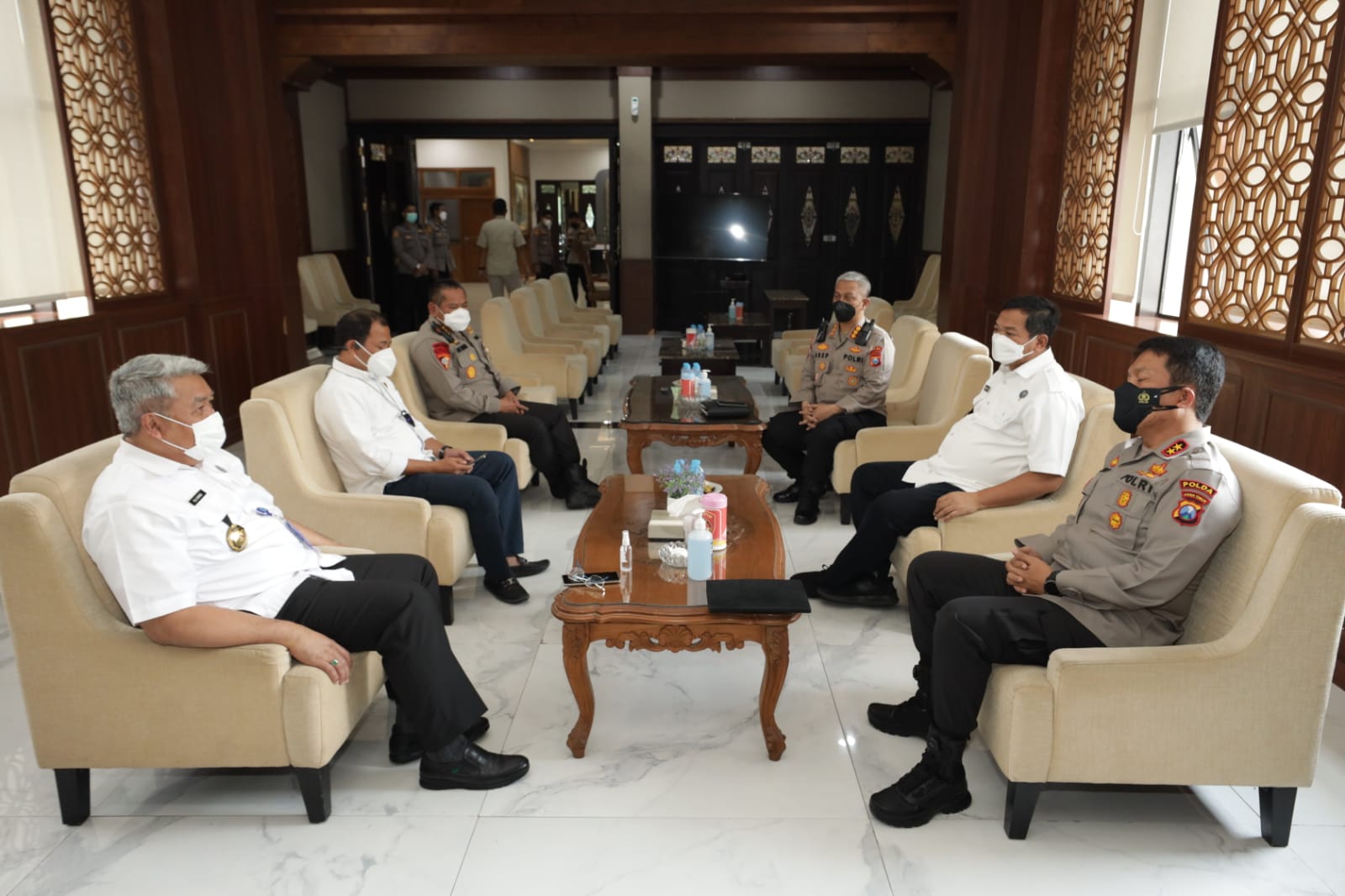Deputi Hukum dan Kerja Sama Badan Narkotika Nasional (BNN) RI, Irjen Pol Puji Sarwono dan Kepala Badan Narkotika Nasional Provinsi (BNNP) Jatim, Brigjen Pol M. Aris Purnomo. Kamis siang (7/10/2021) melakukan silaturahmi dengan Kapolda Jawa Timur Irjen Pol Nico Afinta, di selasar lobby lantai gedung Tribrata, Polda Jatim.