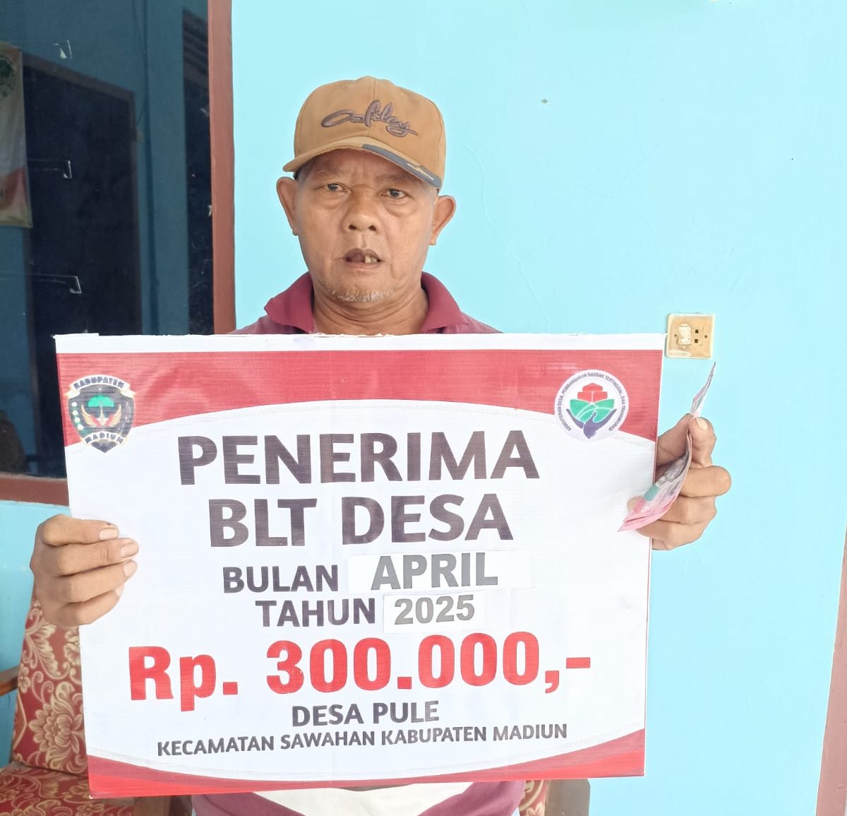 Desa Pule Kecamatan Sawahan Kabupaten Madiun, pada tahun ini menetapkan 13 Keluarga Penerima Manfaat Bantuan Langsung Tunai Dana Desa ( KPM BLT DD) dengan nominal bantuan sebesar Rp 300.000,- setiap bulan selama 1 tahun. Bantuan tersebut dibagikan di Aula Kantor Desa Pule pada tanggal (30/04/2025).