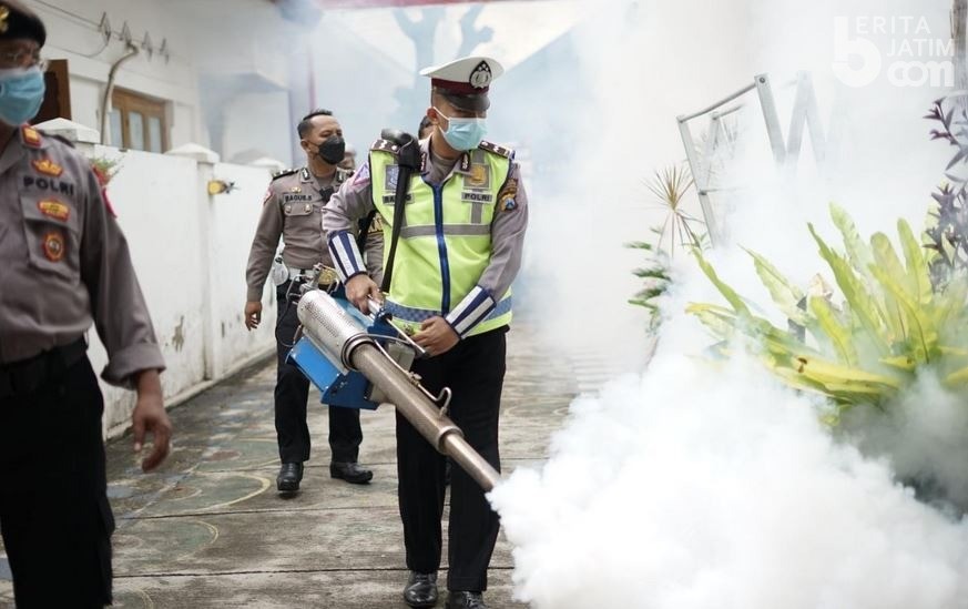 “Akhir-akhir ini banyak kasus DBD, makanya kita melakukan fogging,” kata Kasat Lantas Polres Ponorogo AKP Ayip Rizal, Senin (17/1/2022).