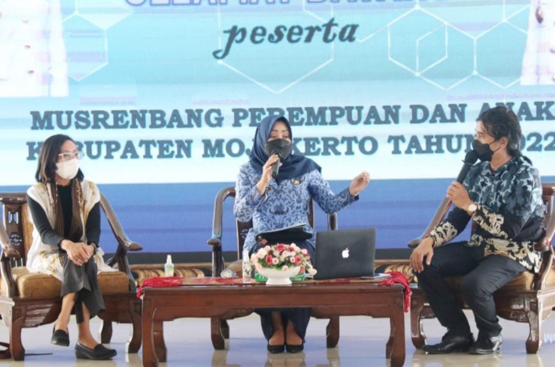 Bappeda Kabupaten Mojokerto menggelar Forum Rembug Bersama Kelompok Perempuan, Anak, dan Penyandang disabilitas, Senin (18/4), di Pendopo Graha Maja Tama (GMT), Pemkab Mojokerto.