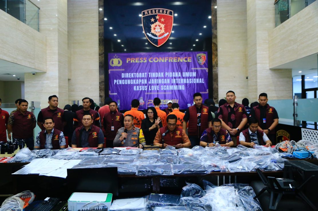 Penyidik Direktorat Tindak Pidana Umum Bareskrim Polri melakukan penangkapan terhadap tiga tersangka penipuan melalui aplikasi kencan daring. Dua tersangka merupakan WNA Cina dan satu tersangka WNI.