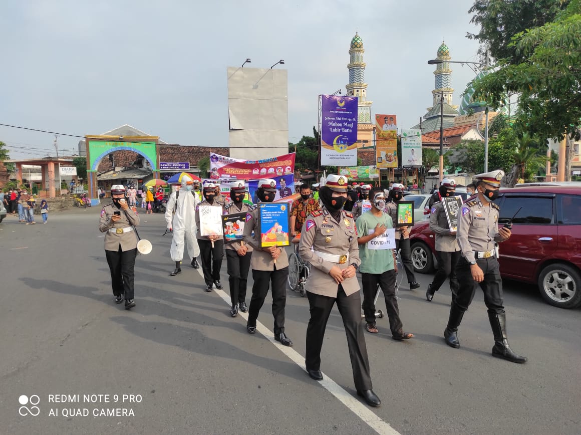 Salah satu cara untuk menghimbau masyarakat tentang penerapan prokes getol dilakukan. Seperti di CFD Alun alun kota Mojokerto Minggu pagi tadi (22/5). Anggota Satlantas Polresta Mojokerto gelar teaterikal tentang bahaya virus corona yang belum berakhir. Yakni dengan membawa keranda, juga ada yang memerankan orang yang terkena virus mematikan itu serta teatrikal masyarakat yg terpapar Covid 19.