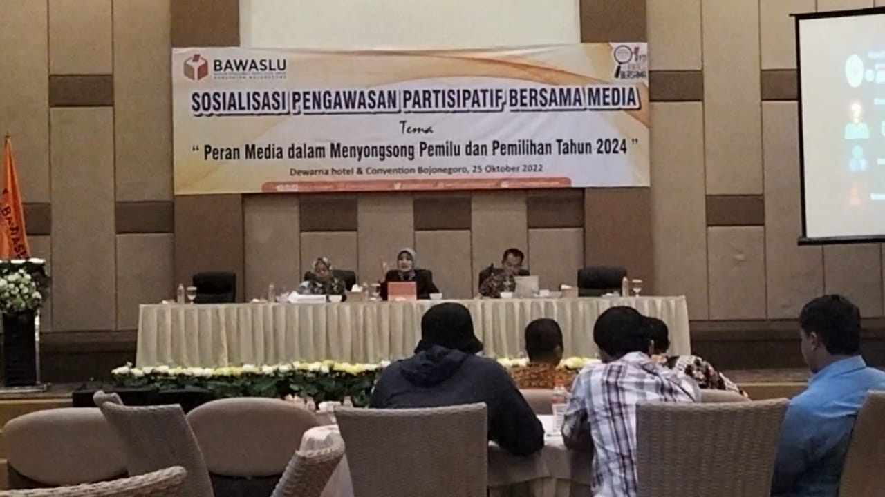 Badan Pengawas Pemilihan Umum (Bawaslu) Kabupaten Bojonegoro menggelar Sosialisasi Pengawasan Partisipatif dengan media, di Hotel Dewarna Selasa, (25/10/2022). Sosialisasi mengambil tema peran media dalam menyongsong pemilu dan pemilihan tahun 2024.
