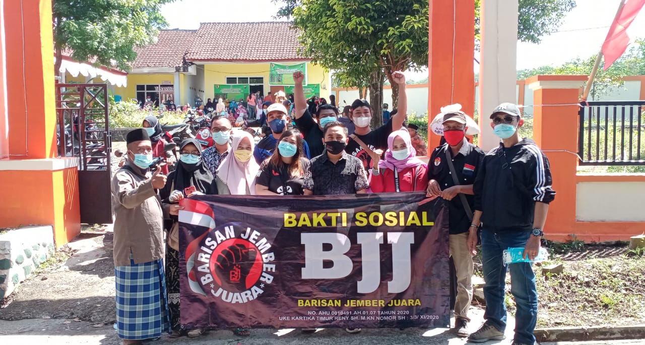 Lagi dan Lagi Komunitas Lembaga sosial Lembaga budaya masyarakat atau yang Viral kita kenal BJJ Barisan Jember Juara mengkampanyekan penggunaan masker,serta Bagi bagi masker secara gratis tis tis.Kali ini Lembaga sosial budaya BJJ Barisan Jember Juara berbagi masker diwilayah utara kota jember tepatnya di Desa Darsono kecamatan Arjasa jember jawa timur Kamis 19 aguatus 2021.