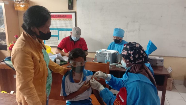 Kasi Urkes Kliniik Pratama Polres Buleleng, IPDA dr Maitri Devi menjelaskan,”Vaksin yang diberikan kepada anak – anak adalah vaksin biofarma dan disela-sela pelaksaan vaksin disampaikan juga kepada anak-anak untuk tetap mematuhi prokes covid 19 terutama memakai masker, menjauhi kerumunan dan mencuci tangan dengan sabun di air yang mengalir,”jelasnya.