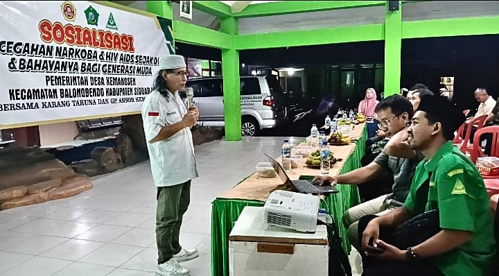 Kegiatan tersebut terlaksana atas kolaborasi Pemerintah Desa Kemangsen bersama Karang Taruna dan GP Ansor Desa Kemangsen, dengan menghadirkan narasumber kompeten dari Badan Narkotika Nasional Kabupaten (BNNK) Sidoarjo serta Yayasan Pondok Pesantren (YPP) Al Kholiqi Rehabilitasi Sosial Pecandu Narkoba.