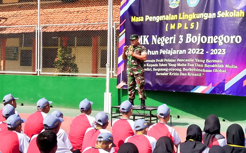 Dalam rangka meningkatkan jiwa nasionalisme, dan karakter yang mandiri terhadap generasi muda, jajaran TNI dari Kodim 0813 Bojonegoro, memberikan materi Wawasan Kebangsaan (Wasbang) kepada ratusan pelajar SMK Negeri 3 Bojonegoro dalam kegiatan Masa Pengenalan Lingkungan Sekolah (MPLS) tahun ajaran 2022/2023.