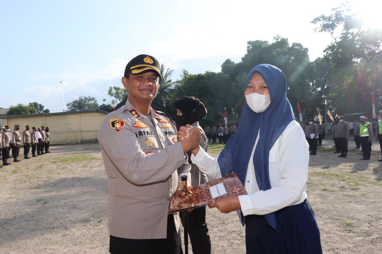 Sri diundang ke Mako Polres Lombok Tengah oleh Kapolres, untuk menerima piagam penghargaan dan ucapan terimakasih pada saat pelaksanaan Apel pagi.