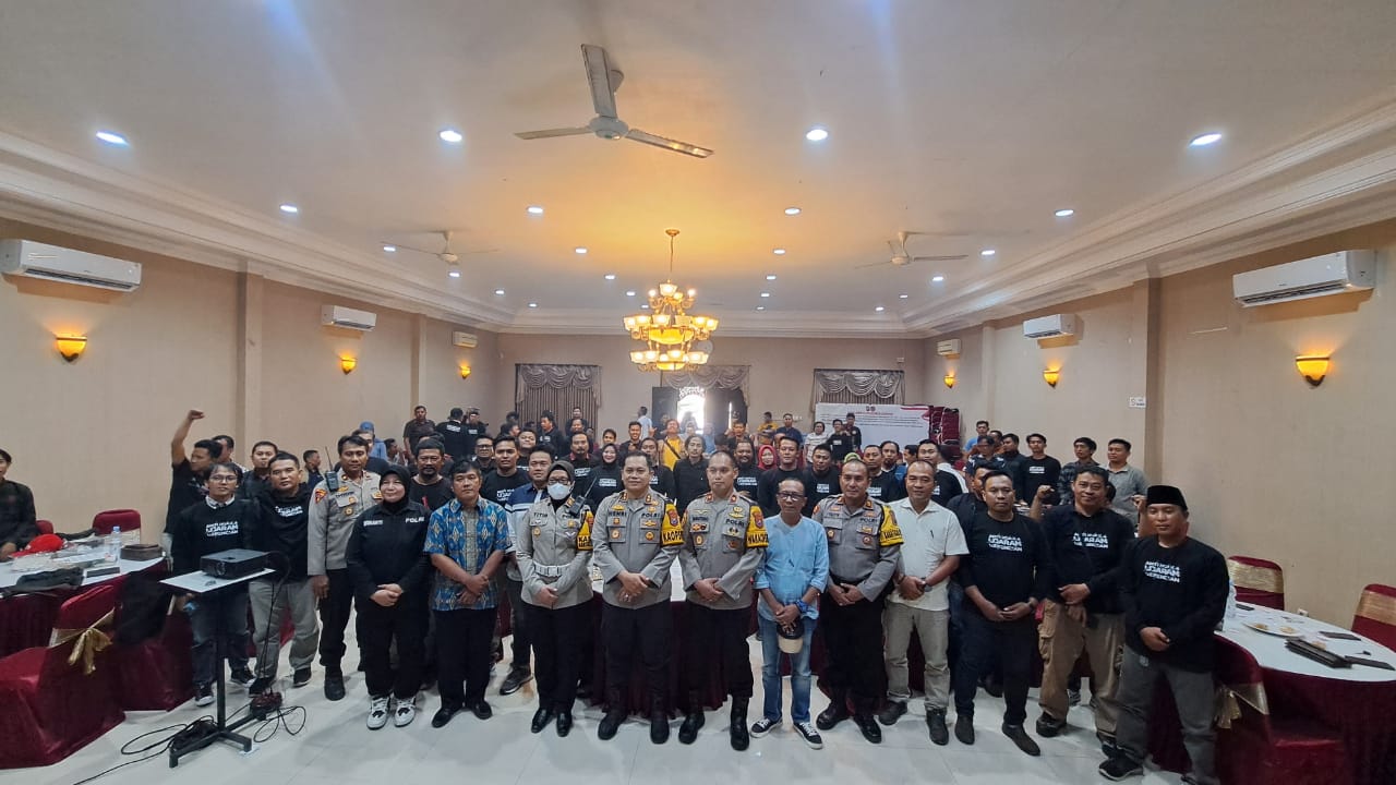 Polres Sumenep ngopi bareng bersama insan media mengajak dan menjaga Dalam upaya menjaga kondusifitas Kabupaten Sumenep menjelang Pemilihan Bupati tahun 2024, para jurnalis di Sumenep menggelar deklarasi Pemilu Damai 2024. Acara yang diinisiasi oleh Humas Polres Sumenep ini berlangsung di Hotel C1 meeting room hall pada (29/8/2024)