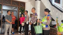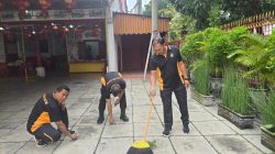 Dipimpin AKP Ambarwati anggota Polwan bersama-sama pengurus pura membersihkan area tempat ibadah umat Hindu tersebut. Tidak hanya di bagian luar pura, bagian dalam juga dibersihkan guna menunjang kenyamanan dalam menjalankan ibadah.