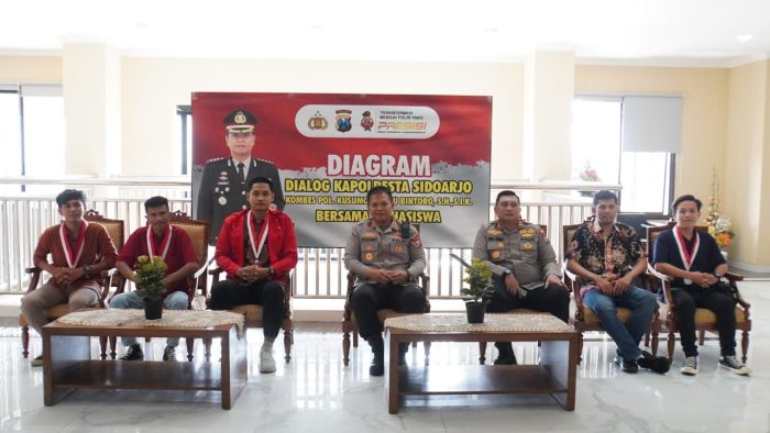 Didampingi Wakapolresta Sidoarjo AKBP Deny Agung Andriana, Kapolresta Sidoarjo Kombes Pol. Kusumo Wahyu Bintoro menyambut baik berlangsungnya dialog bersama mahasiswa dari GMNI Cabang Sidoarjo.
