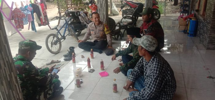 Bhabinkamtibmas Desa Gintung tengah Polsek Ciwaringin Polresta Cirebon Polda Jabar, Bripka Tatang, Taruna, dan Babinsa Koramil Ciwaringin Sertu Urip Rahmat, melakukan sambang warga sambil memberikan himbauan kamtibmas, Senin (19/06/2023).