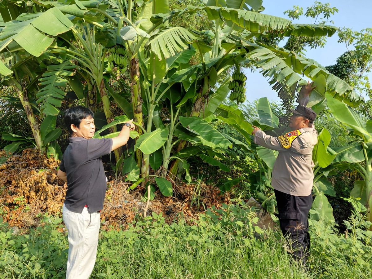 Dalam kegiatan pelaksanaan wujudkan swasembada pangan ini, anggota Bhabinkamtibmas Desa Pangkemiri, Aiptu M. Ismail, melakukan pengecekan langsung terhadap lahan pekarangan milik warga di RT 05 RW 02 yang telah dimanfaatkan untuk penanaman pohon pisang.